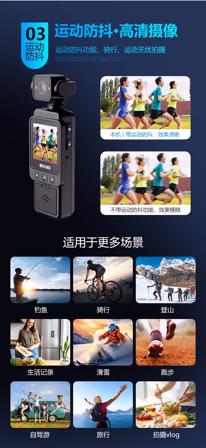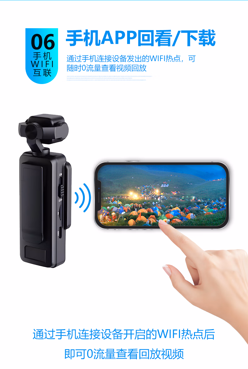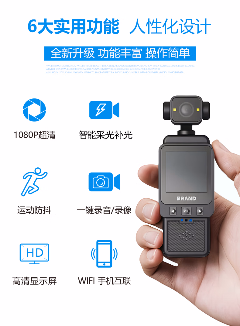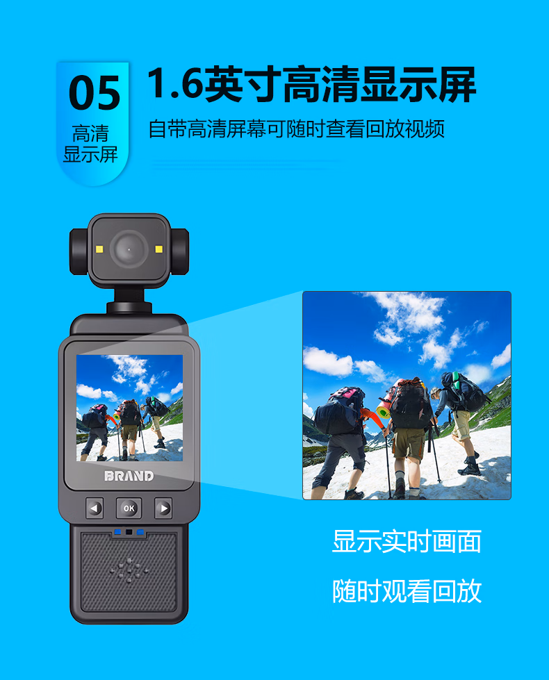 手持摄像运动相机胸前记录仪vlog机摄像头高清监控户外随身便携式录像机