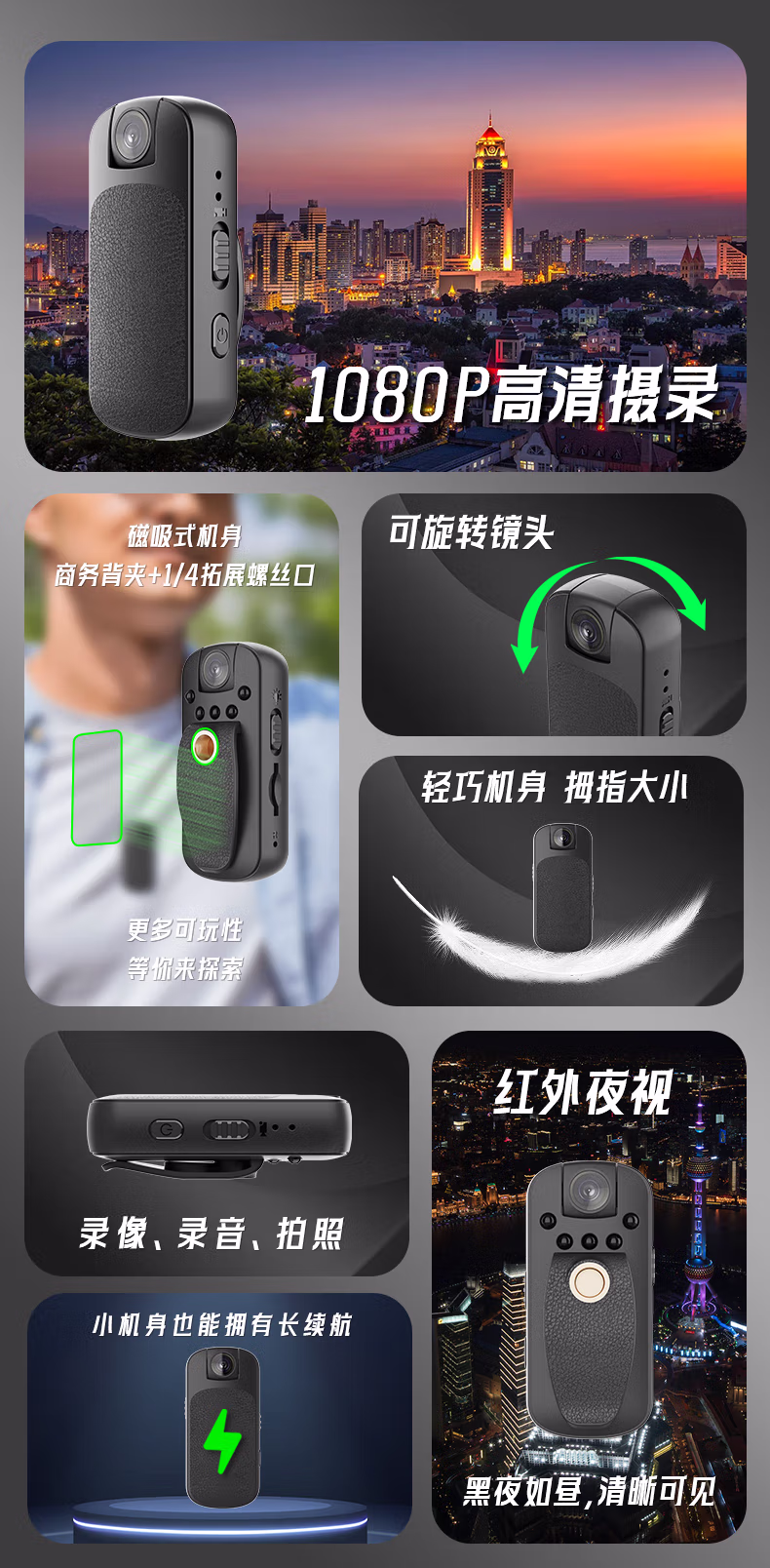 磁吸防抖摄像机口袋小型随身固定自行车执法记录仪