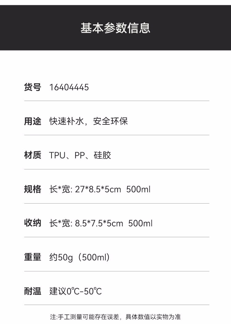 户外软水袋运动跑步登山徒步折叠便携软水瓶软水壶